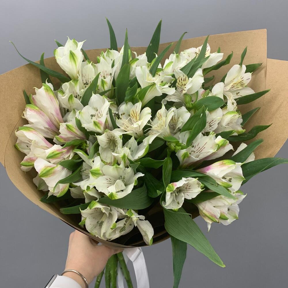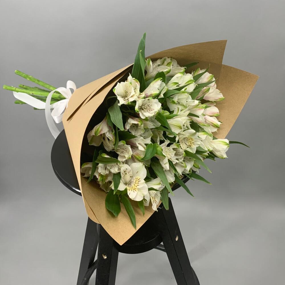 Букет из белых альстромерий в крафтовой упаковке в Спас-Клепиках