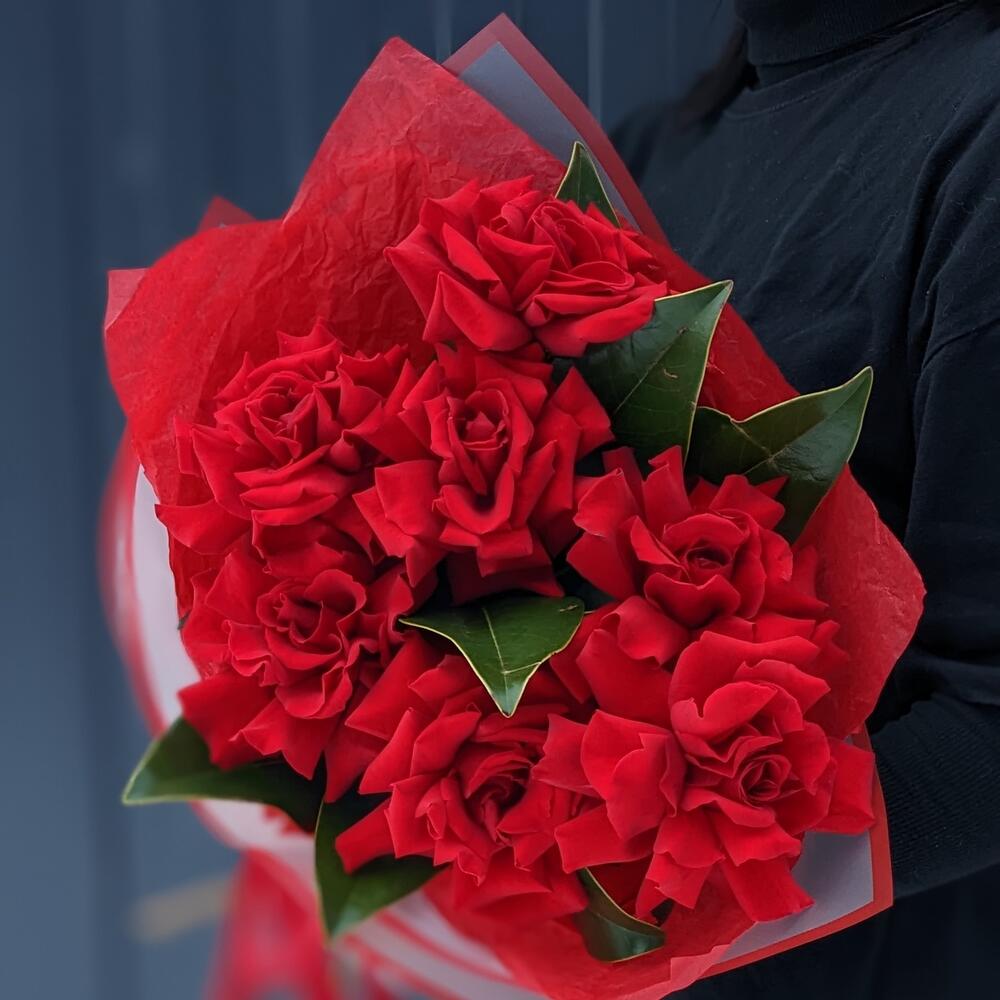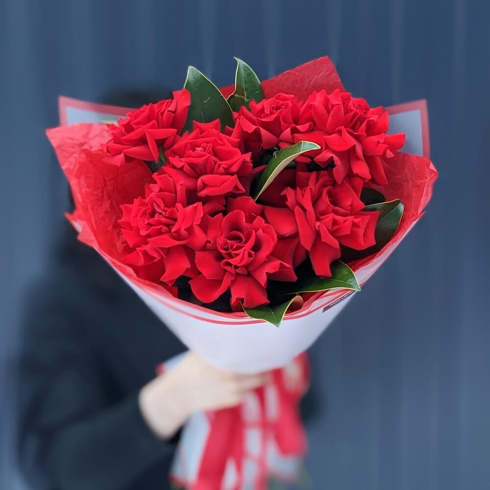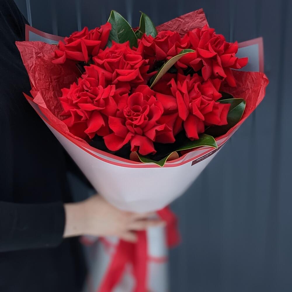 Французская роза - 7 шт. магнолия ветка - 2 шт. Упаковка дизайнерская - 1 шт.